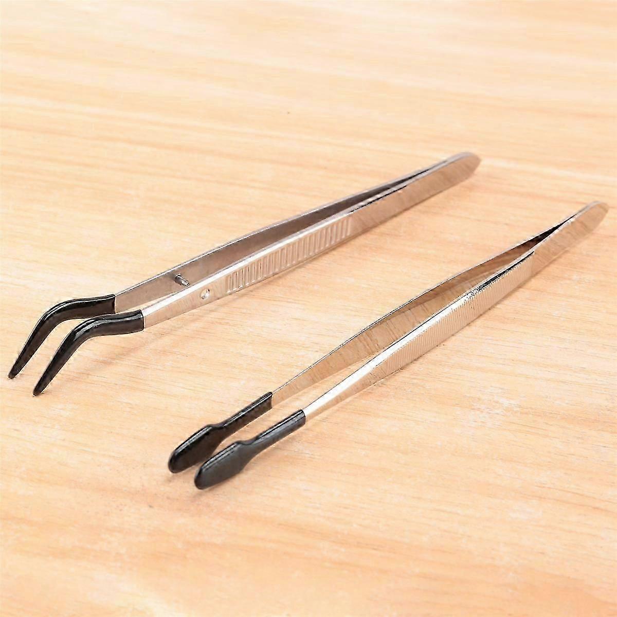 2 pieces of rubber tip tweezers set for craft laboratory industrial hobby tweezers pliers jewelry stamp plastic box