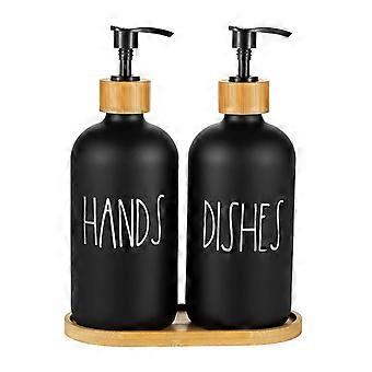2PCS Wooden Tray Soap Dispenser Hand Sanitizer Bottle For Kitchen Sink 500 Ml High-quality Glass Elegant Design Durable