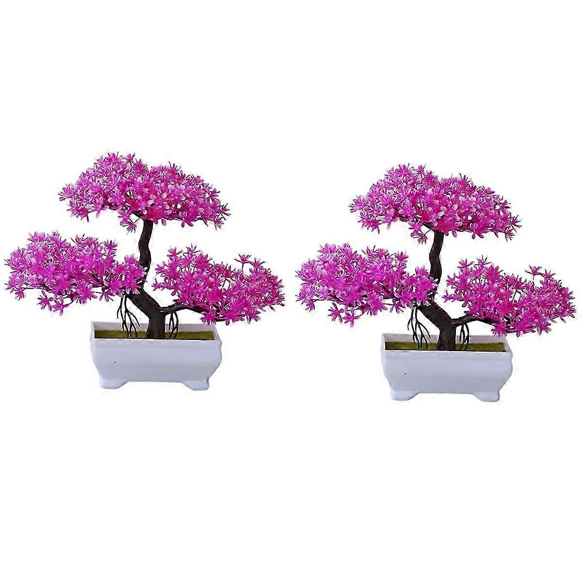 2pcs Artificial Plant Bonsai Plastic Small Tree Pot Fake Plant Flower Potted Ornaments For Home Room Table, Lotus Color