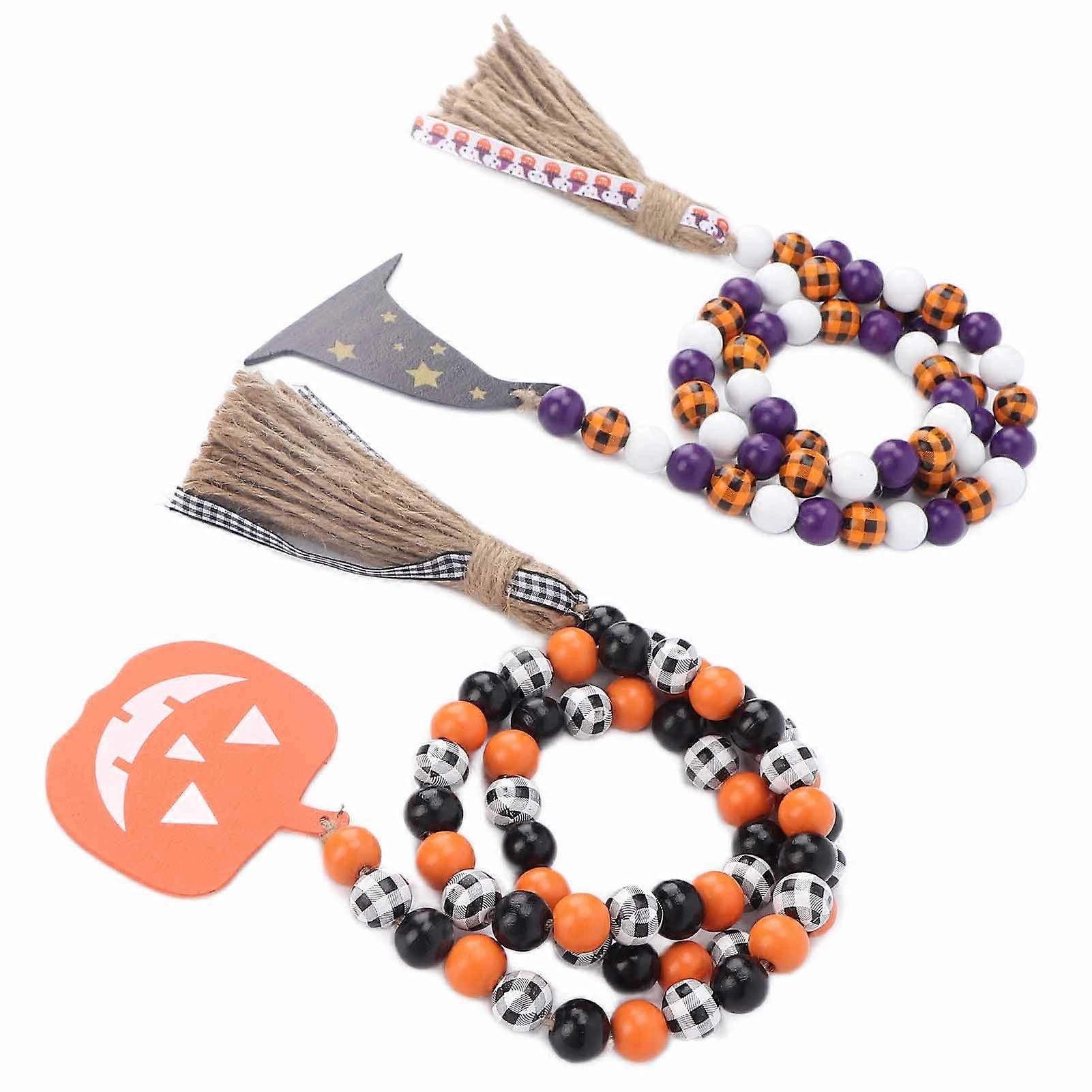 2Pcs Halloween Wood Beads Classic DIY Odorless Comfortable Durable Natural Farmhouse Bead Garland for Tree Wall Window