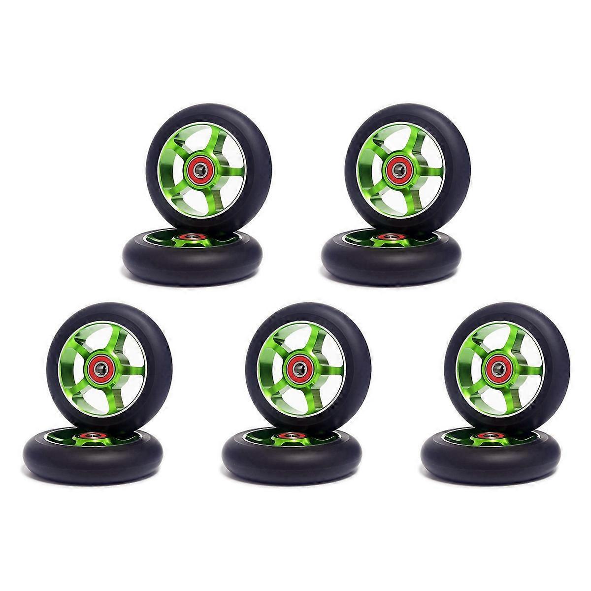 2Pcs 100mm Scooter Wheels with Bearings Aluminum Scooter Parts,Green