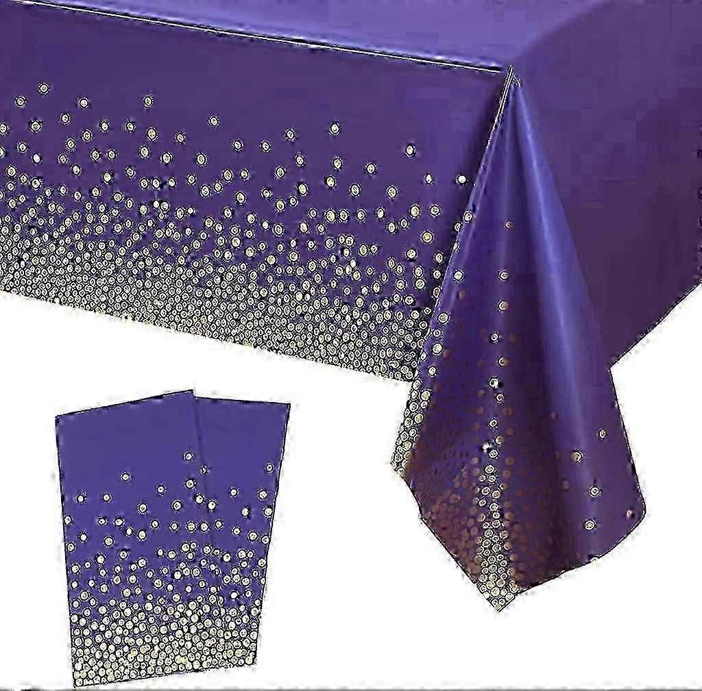 2Pcs 137*274cm Purple and Gold Dot Disposable,Confetti Rectangular Tablecover Plastic-Purple