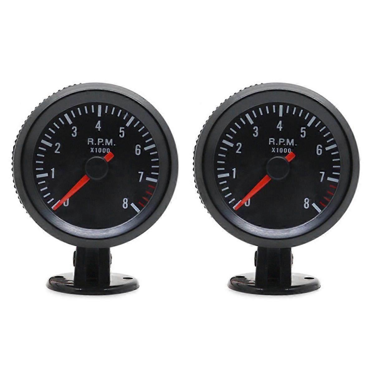 2 Pcs 2 Inch 52mm Car Meter Tachometer RPM Gauge 0-8000RPM Analog Black Case for 1-8 Cylinders Gasoline Car