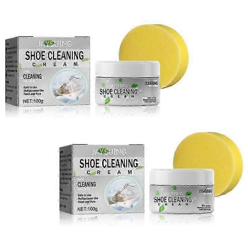 2Pcs 2023 New Shoe Cleaning Cream, White Shoe Cleaning Cream With Sponge, Multifunctional Cleaning And Stain Removal Cream
