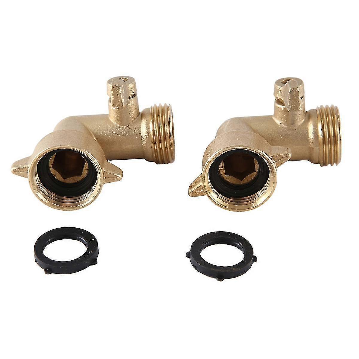 2pcs 90 Degree Garden Hose Elbow With Shut Off Valve-3/4in Hose Adapter With 2 O-rings Solid Brass Garden Hose Connector