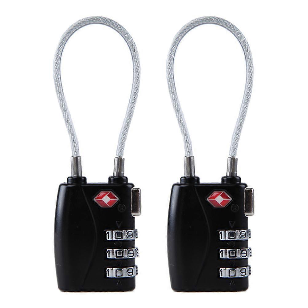 2PCS TSA719 Customs Lock Combination Lock Luggage Lock Three Bit Anti Theft(Black)