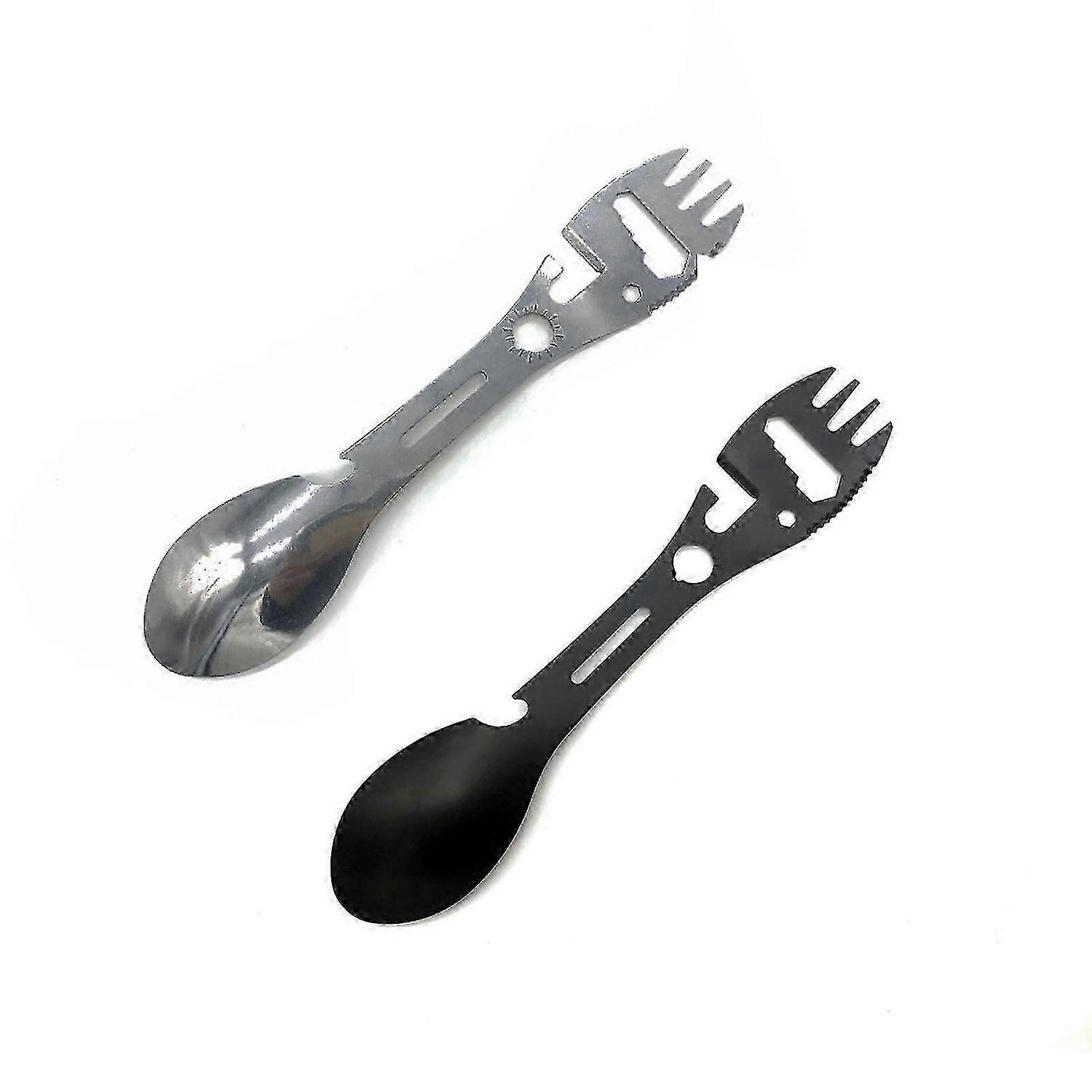 2 Pcs Camping Spork, Stainless Steel Outdoor 10 Functions 1 Design Multifunction Spoon Fork