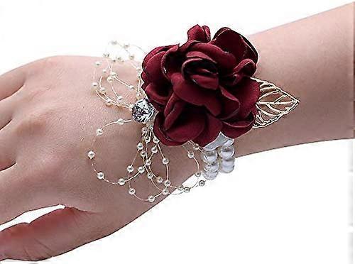About this item Simple and beautiful: artificial flowers, high quality satin. Lace wristbands and fabric florals with gold leaf pearls, ribbons and elastic bracelets. Color: Burgundy, match your clothes as you like Wedding decorations: The wrist perfectly matches the wedding environment to make your wedding more beautiful. Perfect as a wedding bridal wrist, flower girl wrist flower and wedding flower decoration. Occasion: Suitable for prom, party, wedding, prom, anniversary, as a souvenir after the event.