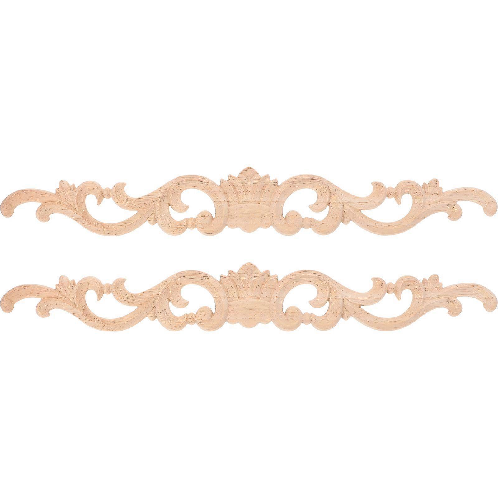 2pcs Wood Carved Onlay Applique European Style Unpainted Flower Center Frames Decal For Furniture Door Cabinet Bed Home Decor