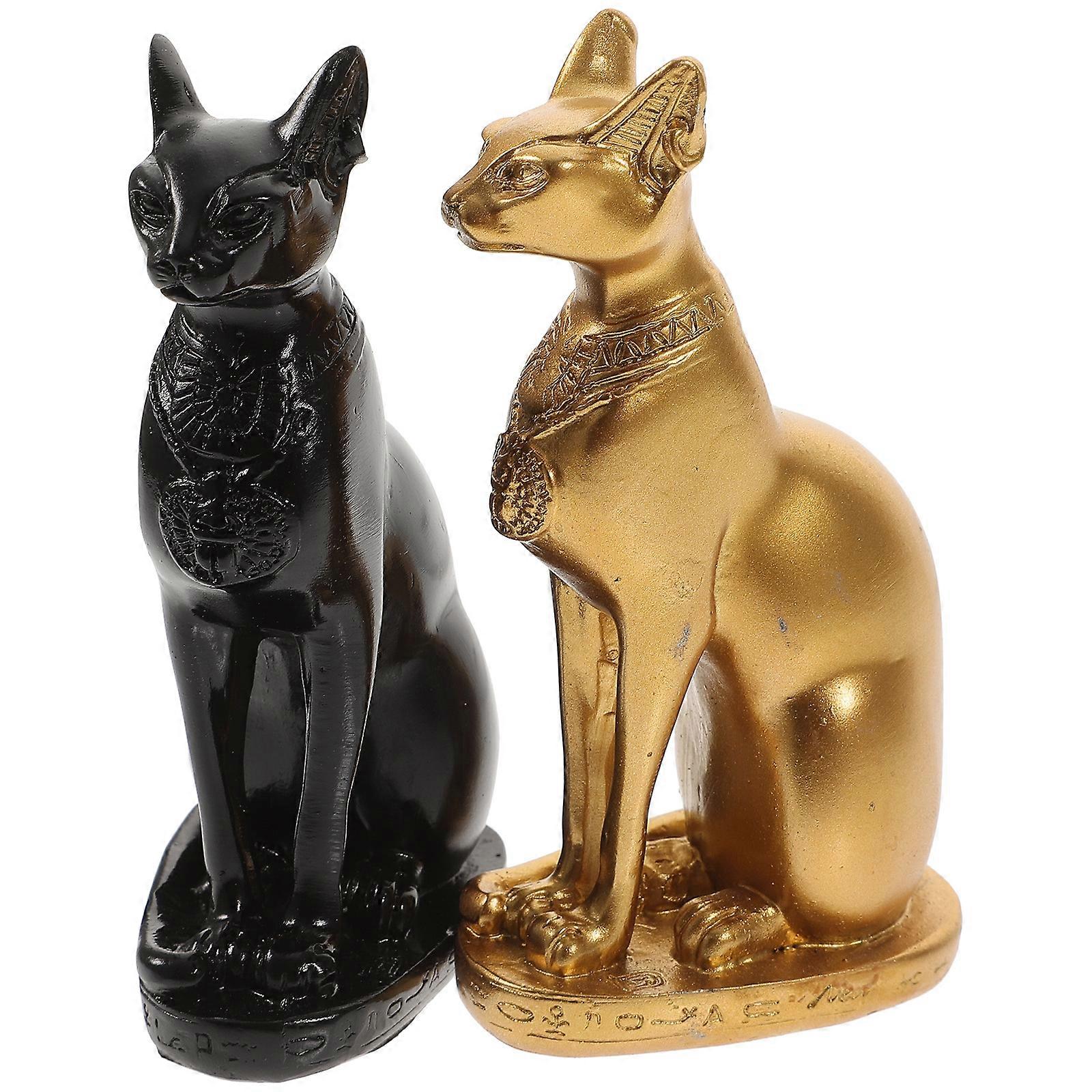 2pcs Antique Egyptian Cat Statue Ornament Desktop Resin Cat Figurine Egyptian Cat Home Decor