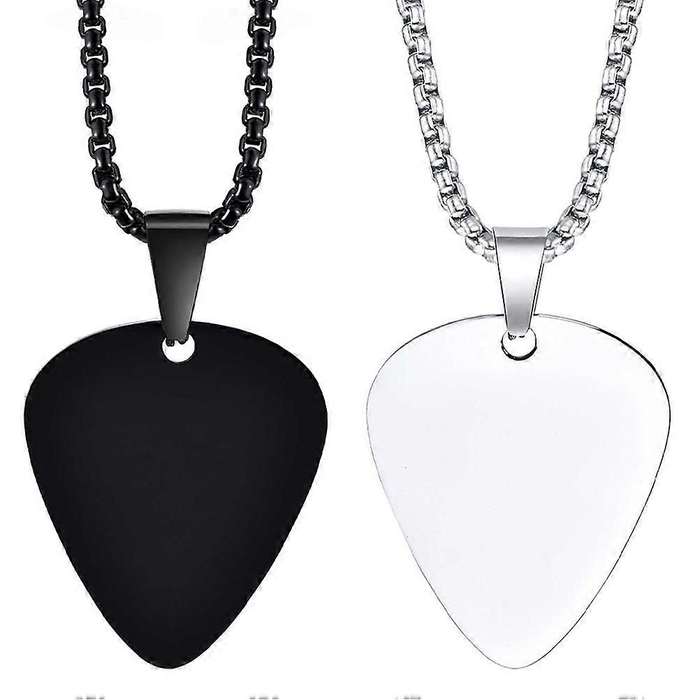 2pcs Guitar Pick Necklace Pendant Stainless Steel Chain Necklace Gift for Women Men