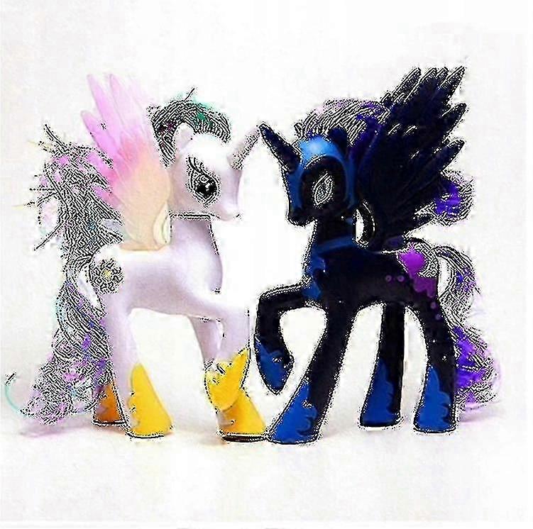 MY LITTLE PONY SET PRINCESS LUNA CELESTIA 14cm Plastic My Little Pony Figure. This set consists of ponies Celestia and Luna. Figure height: 14 cm Material: Plastic and Plastic Colors: White, Black Quantity: 2 x pony ornaments Note: Due to the light and screen setting difference, the item's color may be slightly different from the pictures. Please allow slight dimension difference due to different manual measurement.