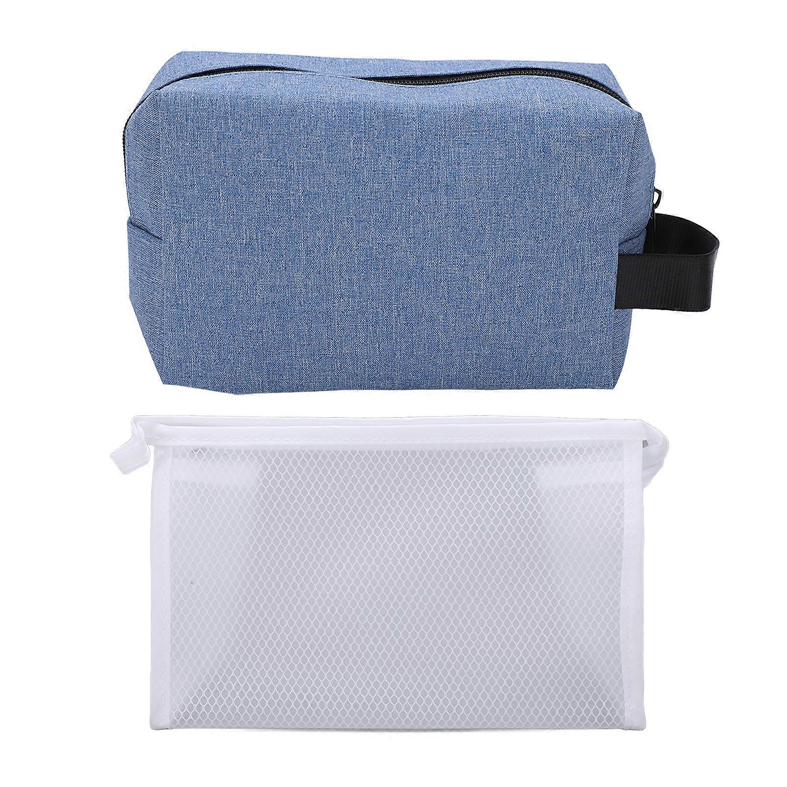 2pcs Storage Bag Travel Cosmetic Bag Waterproof Canvas Toiletry Pouch For Make Up Skin Care Productblue