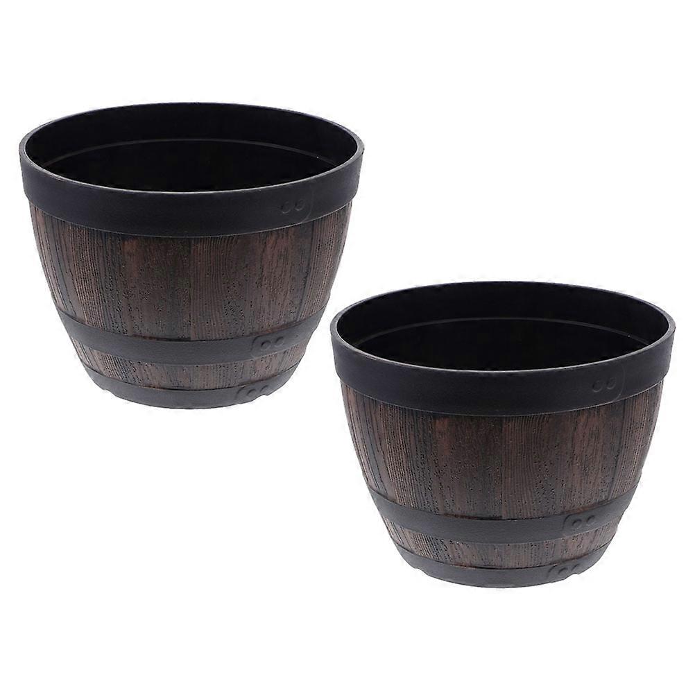 2Pcs Vintage Barrel Planter Plastic Flower Pots for Garden Barrel Shaped Flower Planter Home Plant Holder Hydroponic Planter Decor