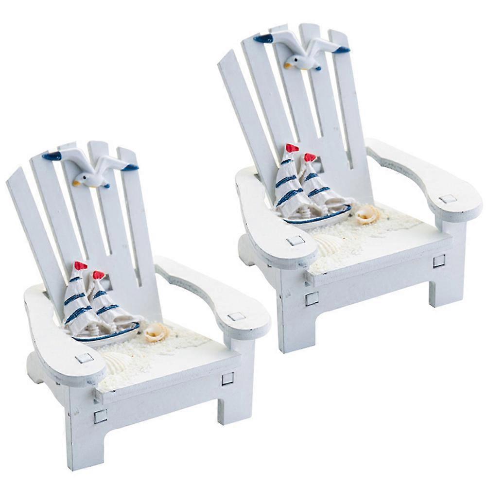 2pcs Home Decor Mini Beach Chair Ornaments Wood Miniature Mediterranean Beach Chair