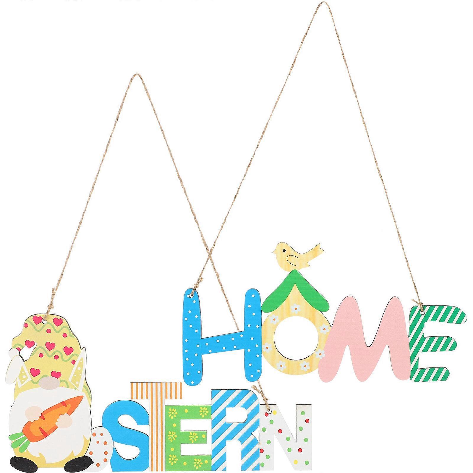 2pcs Easter Gnomes Hanging Decor Wood Sign Easter Party Home Decorations