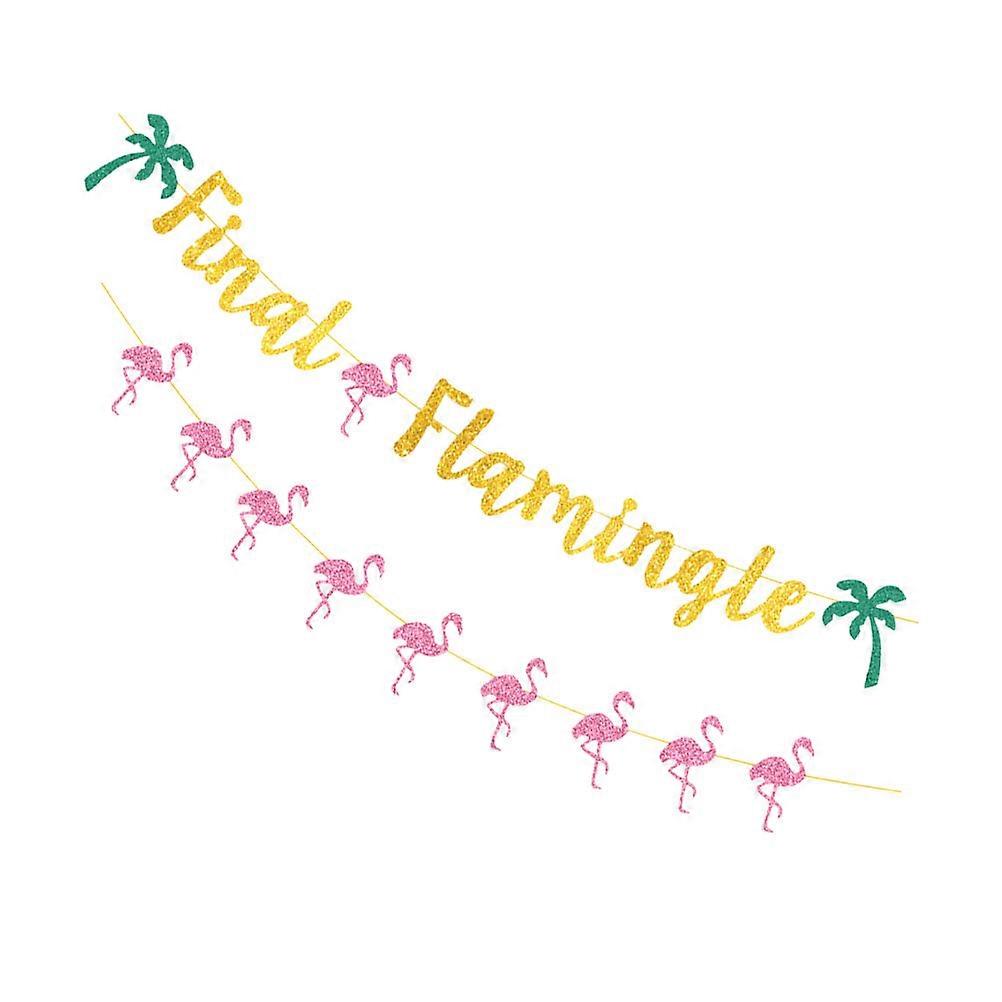 2pcs Flamingo Banner for Hawaiian Party Festival Decorative Hanging Flags Luau Theme Photo Backdrop Gift