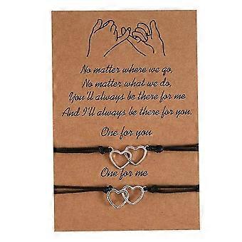 2pcs Adjustable Braided Friendship Bracelets Double Heart Wristband Bangle Couple Jewelry Gifts With Cards-yky