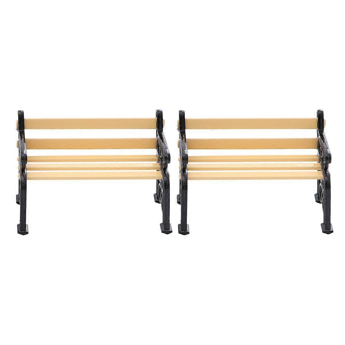 2pcs Mini House Bench Miniature Furniture Park Chair Garden Village Patio Bench (Black)