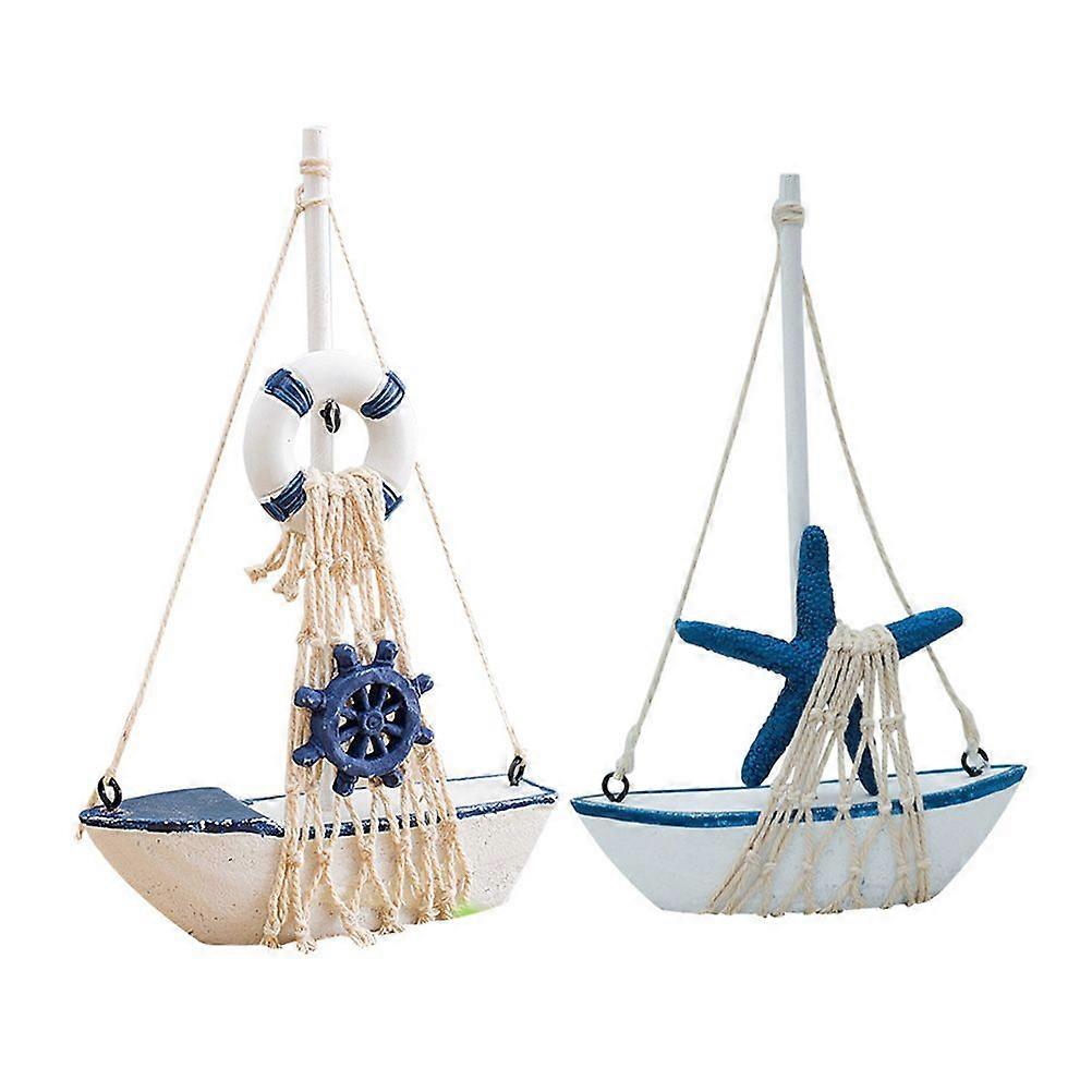 2pcs Mini Sailboat Model Decoration Wooden Miniature Sailing Boat Home Decor