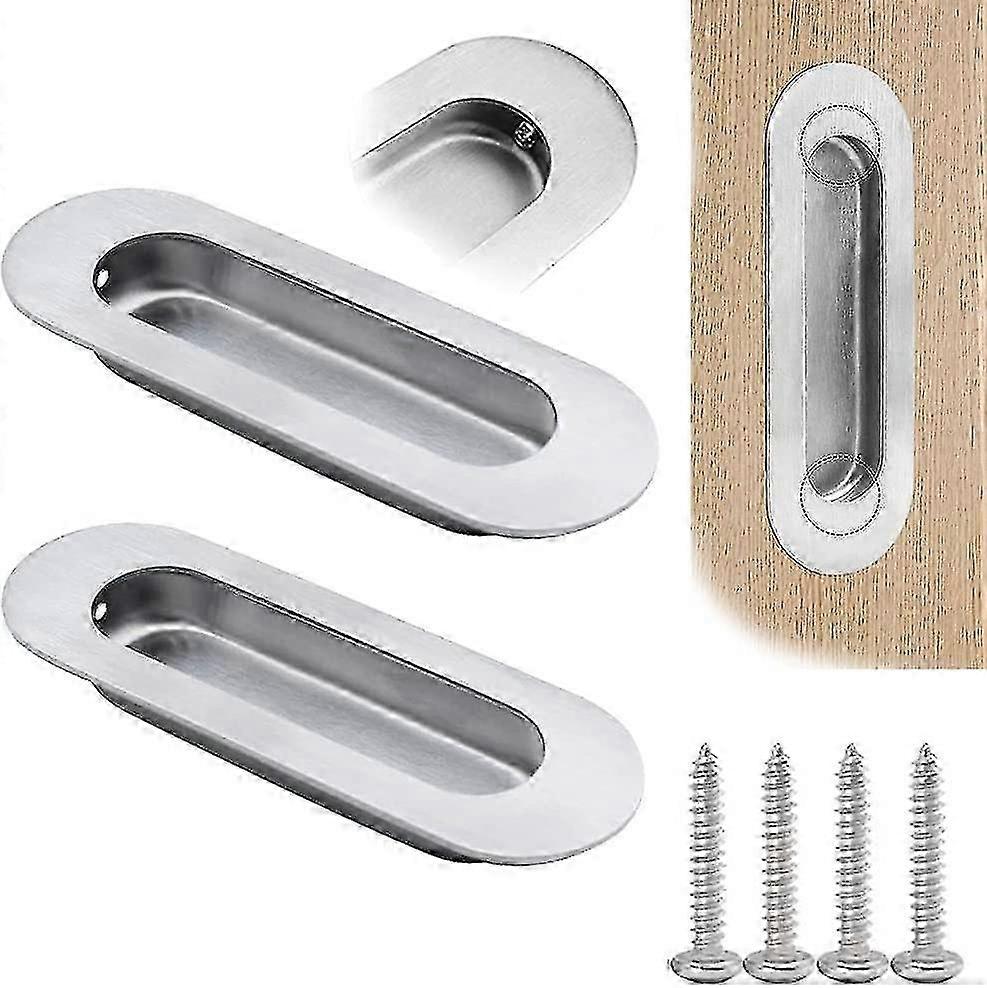 2pcs Brushed Stainless Steel Recessed Oval Oval Sliding Door Handles - 120 X 40 Mm