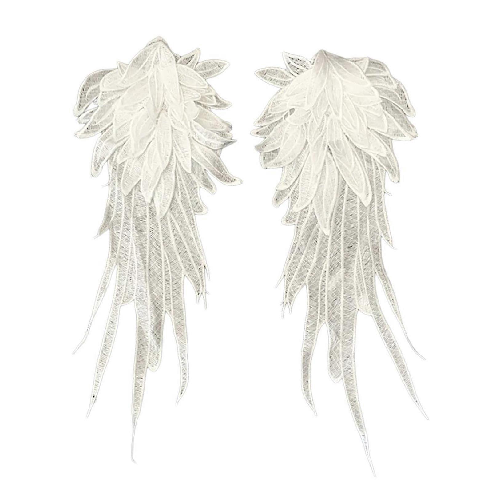 2lots Sewing Angel Wing Embroidered Patches Cosplay Party Decorative Appliques for Unique Clothing Decoration White