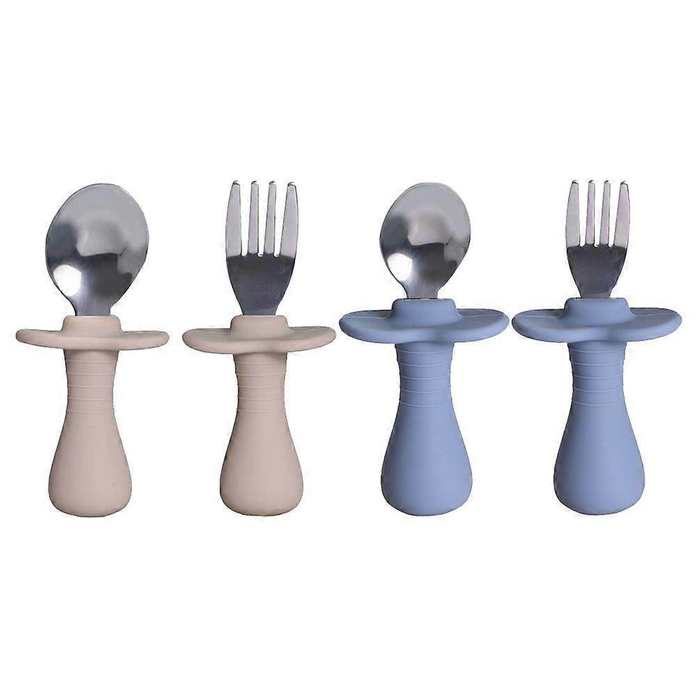 2 Sets Toddler Utensils Kids Silverware with Silicone Handle Spoons and Forks