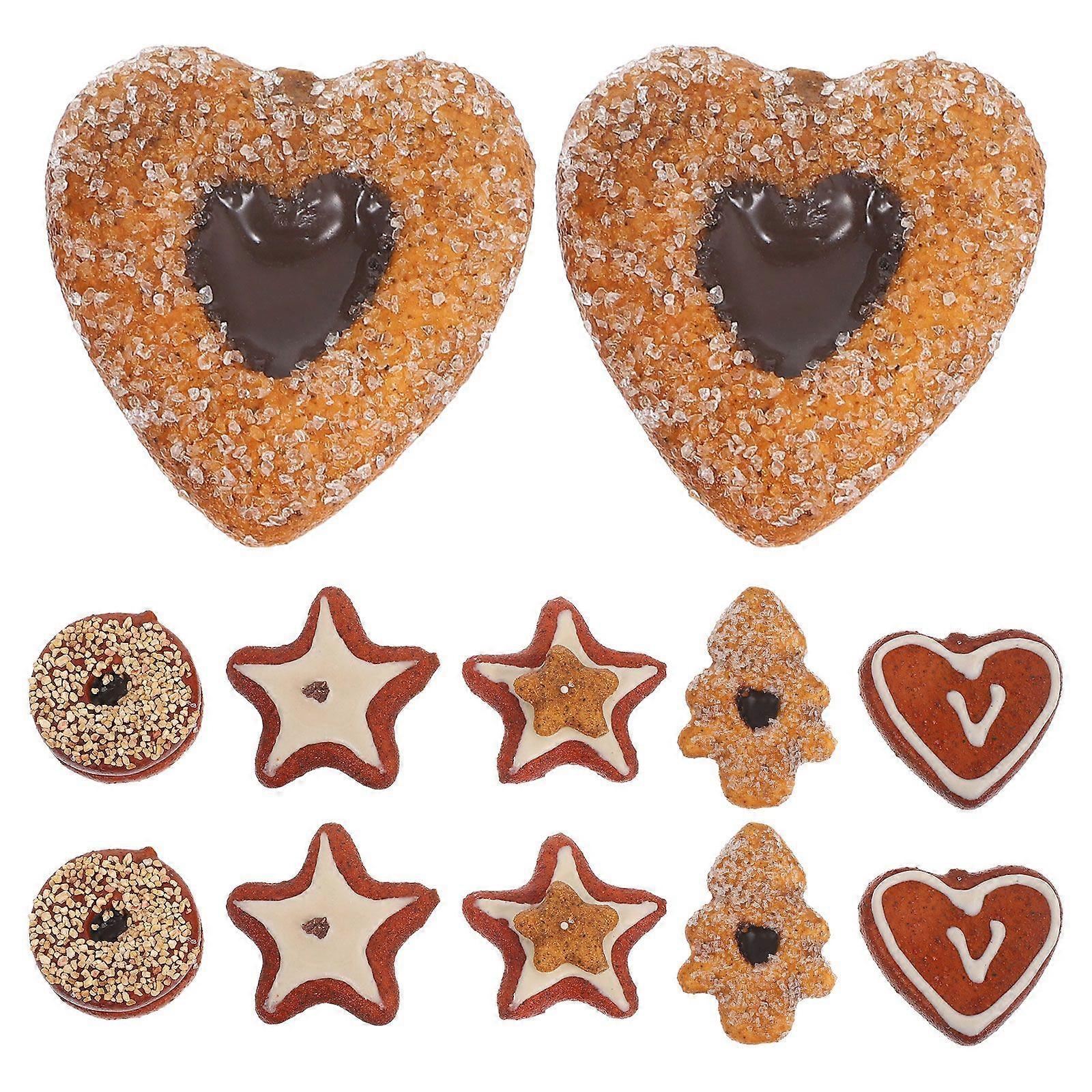 2 Sets Fake Cookie Biscuits: Artificial Chocolate Cookies - Simulation Christmas Dessert - Christmas Tree Heart Star Shape - Food Model For Kitchen Di