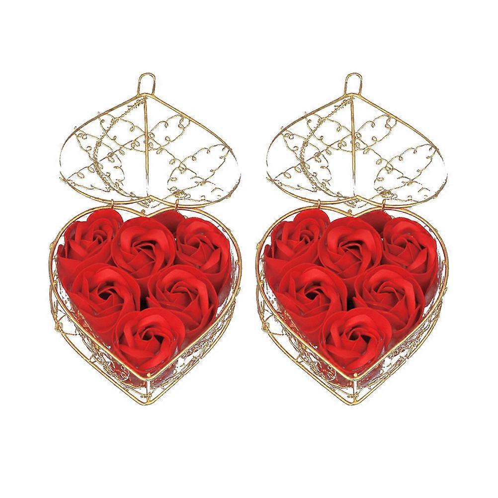 2 Sets Simulation Rose Flower Soap Rose Bouquet Ornament Flower Adornment Valentine's Day Gift for Women Ladies with Iron Basket (Red)