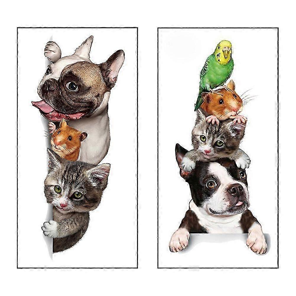 2 Sets Window Stickers Kids Cat Wall Stickers Animals Wall Clings Puppy Decals Bedroom Art Wall Stickers Dog Wall Stickers