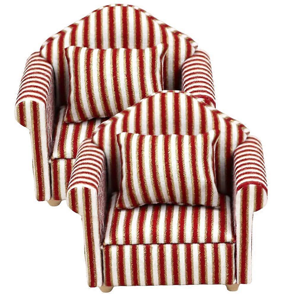 2 Sets Mini Soda Model Doll House Furniture Accessory Stripy Sofa Prop Mini House Layout Prop