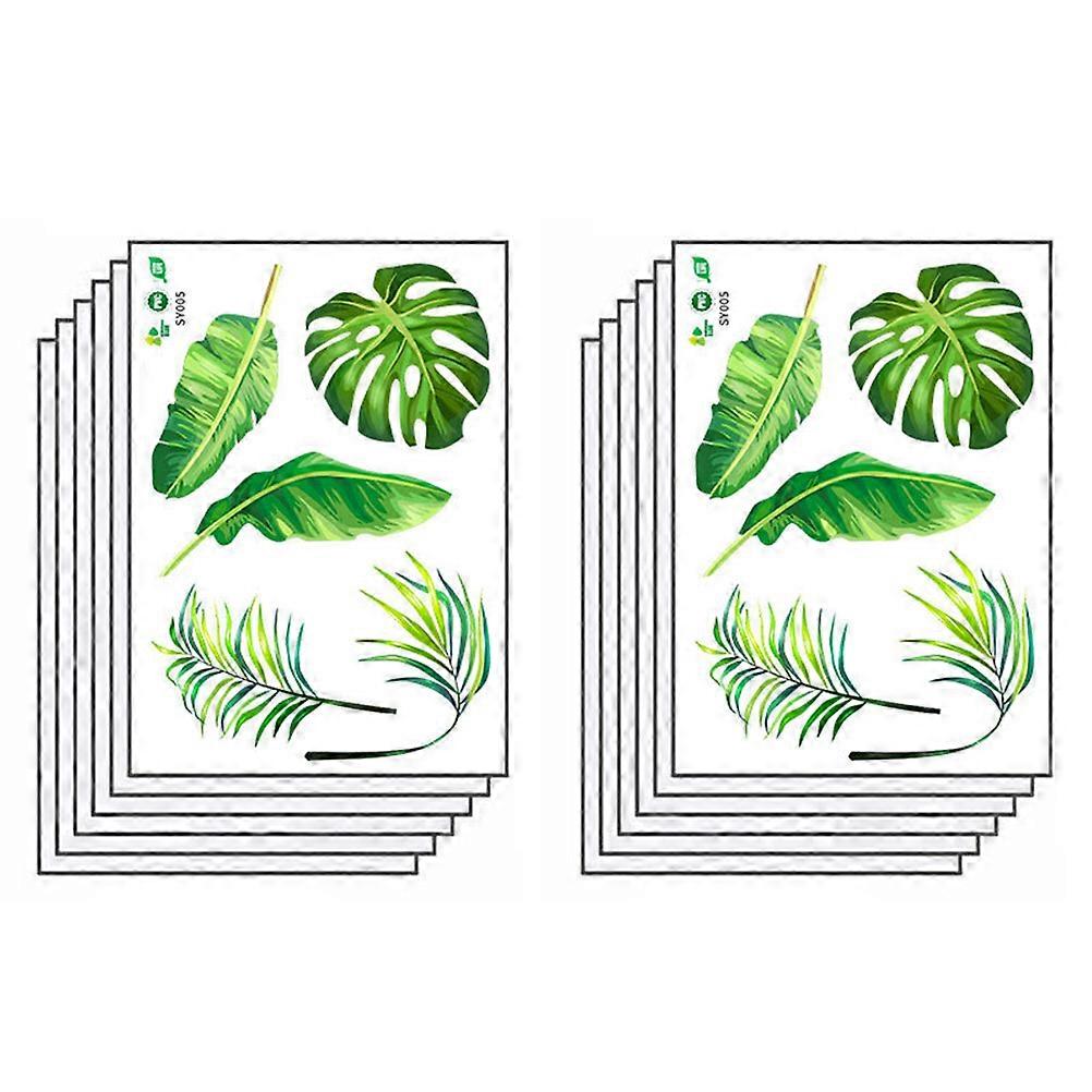 2 Sets/12 Sheets Green Leaf Wall Stickers Self-adhesive Wall Decals Wallpapers