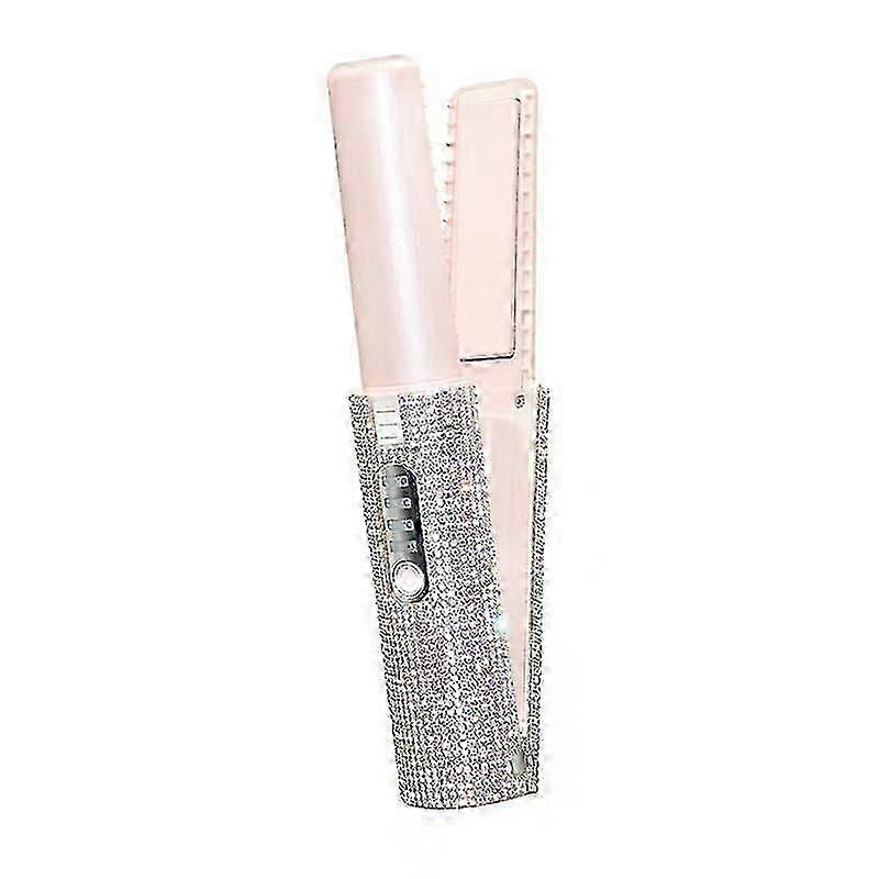 Mini straightener. Cordless flat Iron is small enough to put it in your hand bag. Type C rechargeable, hair straightener can be through power bank, computer, USB adapter, car adapter, etc. Suitable for versatile styling (straightening, curling, and shaping). Crate your hair style quickly before dating, meeting, party, etc. Hair straightener allows you to straighten your messy hair in three minutes. A must-have choice for dressing after up in the morning on weekdaysMultiple different temperature adjustments, suitable for different hairstyles and hair types Multiple different temperature adjustments, suitable for different hairstyles and hair typesEven heating area, better protection of your hair from injury360 Rotatable can rotate the thread head, more convenient to useReal show the excellent quality of the product, you are . With it you can straighten your hair quickly, or do curly hair styling Using steps: Open the "Upper cover ". Push the "safety switch lock" up. Long press "on / off" for 3 seconds, turn straightener on or off. Click "on / off" continuously to switch the temperature range. If light blinks but doesn't heat up or can't go to the setting, use USB charging(5V/2A) for 2.5 hours. Lock the safety switch and close the cover cylinder after use. Colour:pink Material:ABS Package Contents: 1 x Straight Curly Hair Comb 1 x Type-c data cable Only the above package content, other products are not included. Note: Light reflection and different displays may cause the color of the item in the picture a little different from the real thing. The measurement allowed error is +/- 1-3cm.