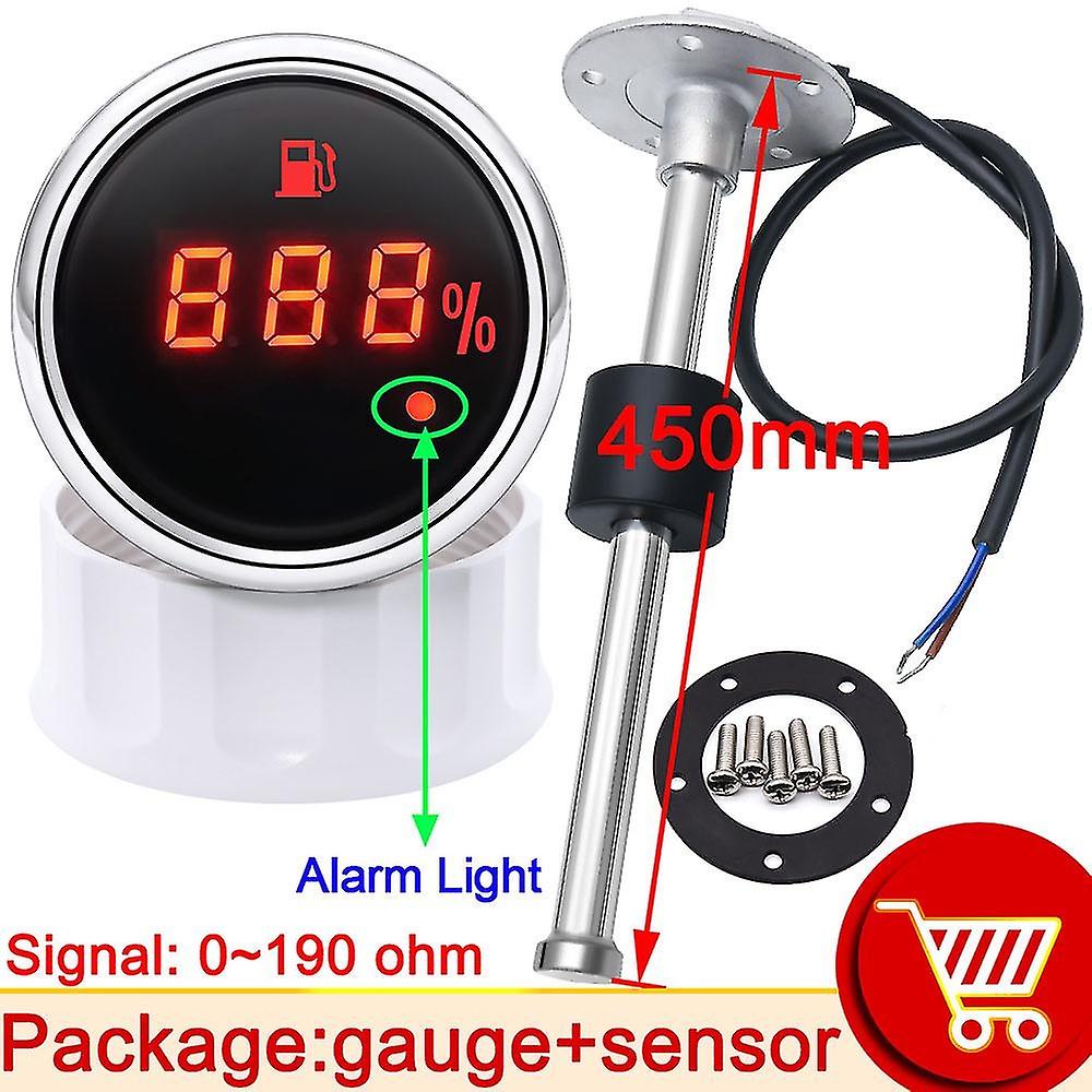 2' 52mm Marine Boat Car Digital Fuel Tank Level Gauge 0-190 Waterproof Fuel Level Meter + Sensor 125