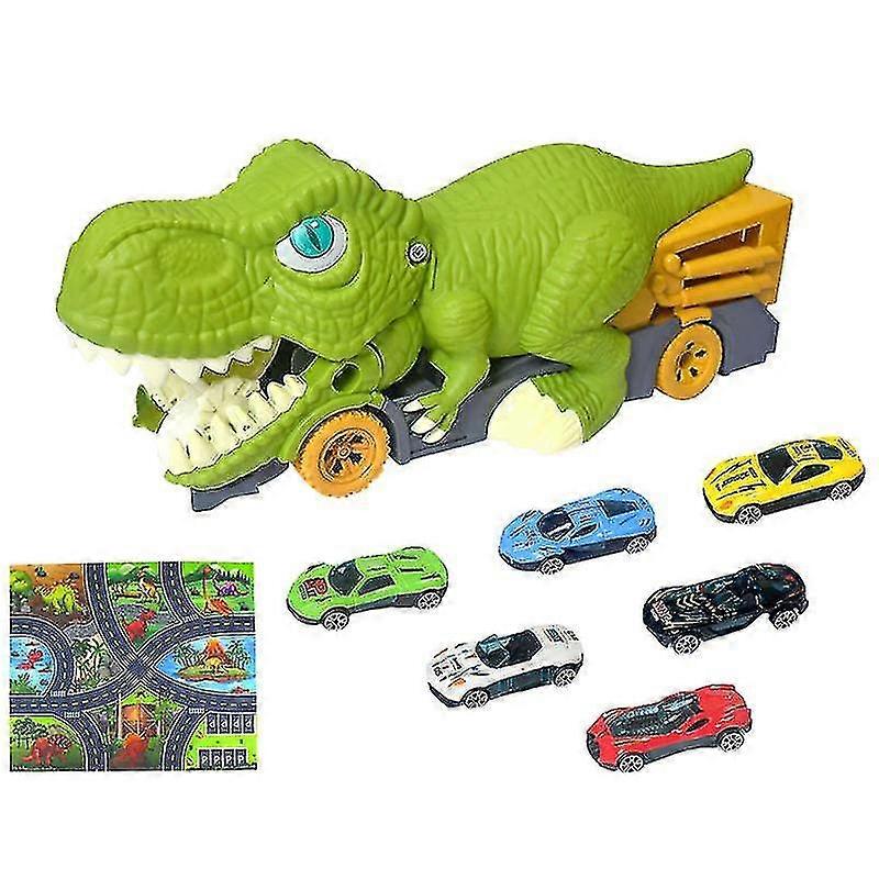 Dinosaur Truck Toys Dinosaur Toys For Kids 2-6 Dinosaur Truck Carrier Toy With 6 Alloy Car And 1 Map Broken-resistant Dinosaur