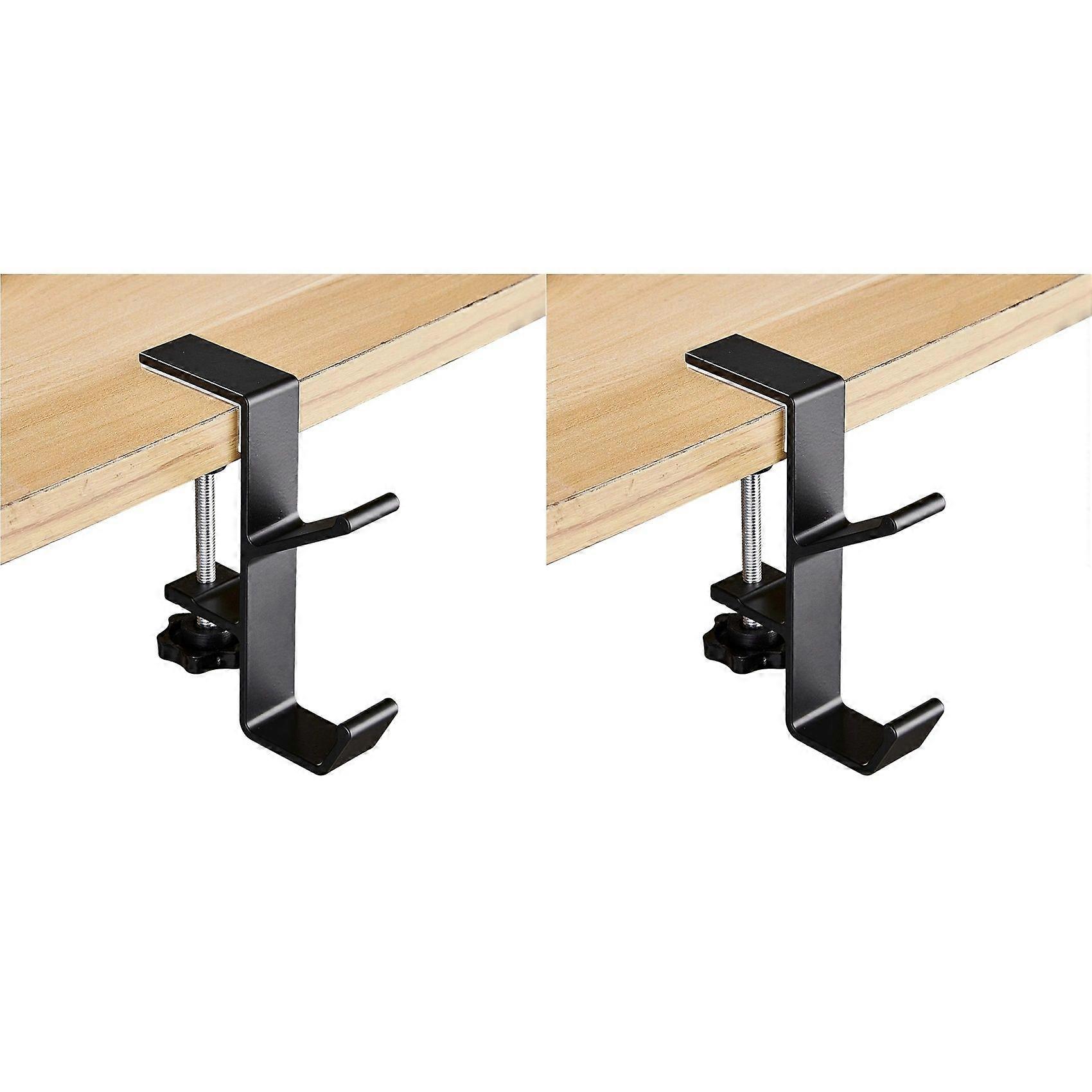 2 Piece Adjustable Table Side Hook, Gaming Headset Table Hanger Backpack Storage, Hook Stand Without Drilling,Black