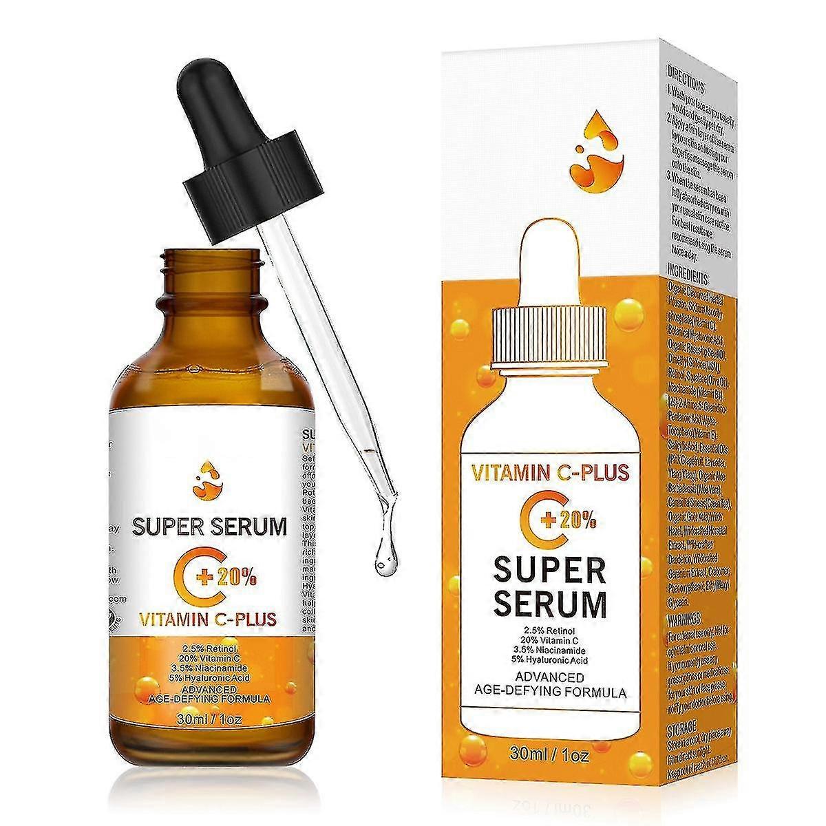 20% Vitamin C Serum With Hyaluronic Acid For Face And Neckline, Vitamin C Anti-ageing Against Dark Spots And Tired Skin 30ml