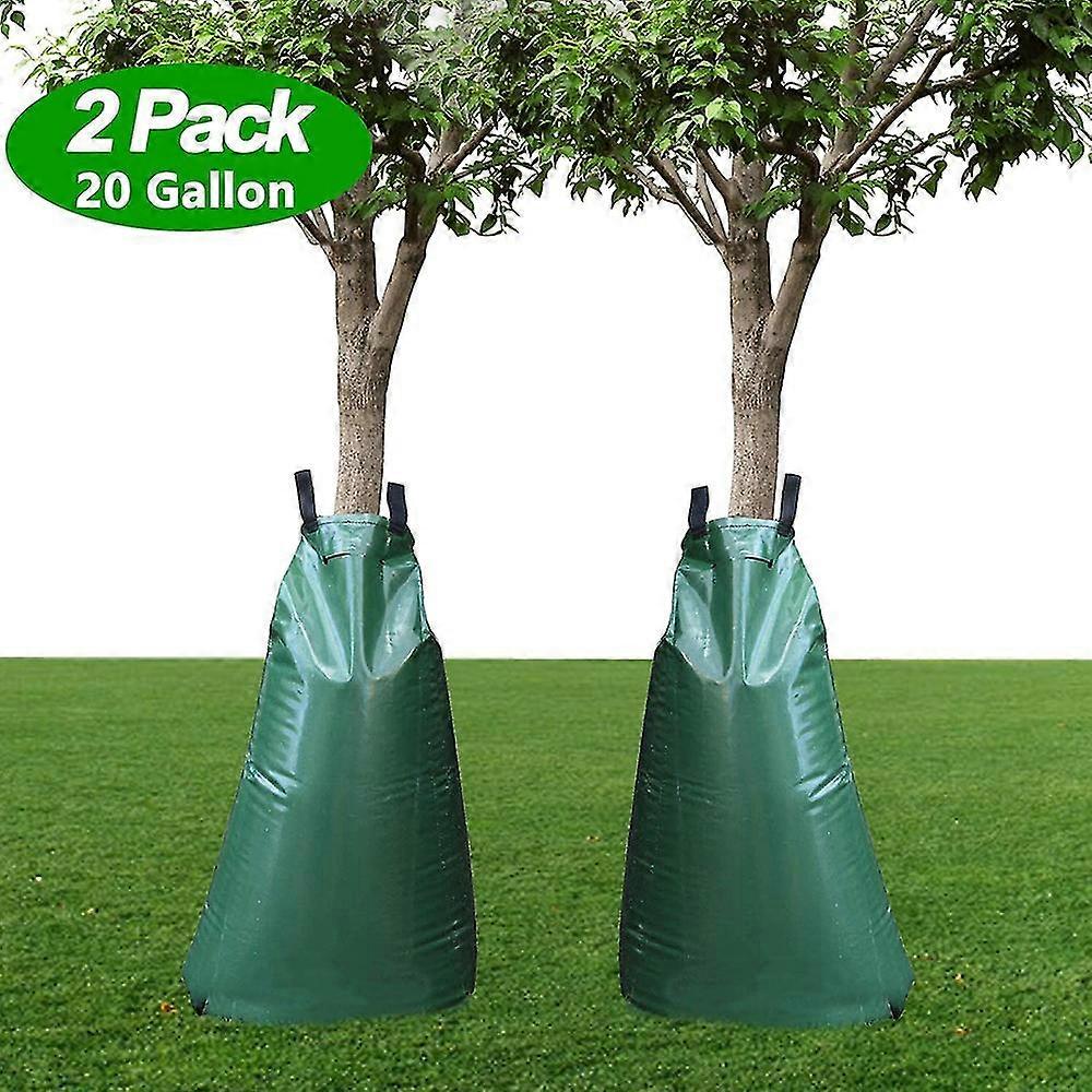 Product descriptionSize: 20 GallonsProduct selection: 1pcs, 2pcsHow to use:-Wrap both sides around trunk and zip it up. Make sure that the bottom of the bag is correctly unfolded-Fill bag to 1/4 capacity with hose, lift up gently on straps at top of bag to expand bottom, and fill bag with water to desired level and continuously water for approximately 5-8 hours.-Refill bag with clean water 1 to 2 times per week or as needed. If using pre-mixed water-soluble fertilizer, make sure that it is dissolved.Key Features:1. Better than Normal Tree Watering Bags in Market Our bags improved points below: a. Heavier Green Rugged PVC Tarpaulin Fabric, stronger and more sturdy; b. Larger Zipper with Reinforced Double Stitching Throughout, hard to broken or ripped out at the threaded area; c.4CM Wide Handle Tape, more comfortable and strong; d. Two micro-perforated release holes along bottom seam, ensure the bag empty in approximately 3 to 8 hours.2. Professional Deep Root Drip Watering Design - Save Time & Water& effort: Bag designed to provide a drip irrigation system directly to tree roots over extended period of time, ensure your newly plated tees survive their crucial first year after being planted. It eliminates the severe water stress new trees endure after transplanting by delivering a high volume of water directly to their root system.3. Bag Capacity & Tree Size This bag can hold up to 20 gallon of water. Single bag fits min.1 inch to max. 4 inch diameter tree with branches at least 25" from the ground; Use 2 single bags zipped together back-to-back to water 4" to 8" diameter trees.4.Very Easy To Use -Wrap the bag around the tree base, zip up bag, insert hose in opening below the handle and begin filling(hose max 3 inch diameter); Drip holes will release water slowly after an initial flow of water; Continue to fill bag to 1/4 capacity, then lift up gently on straps at top of bag to expand bottom, and fill bag with water to desired level and continuously watering. Refill bag 1 to 2 times per week or as needed.