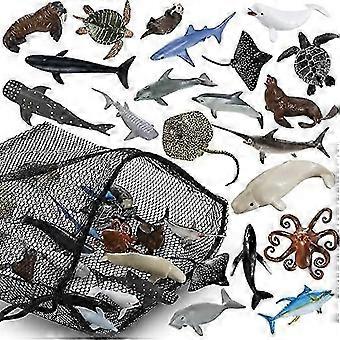 20 عبوة من ألعاب أسماك القرش الواقعية ألعاب المحيط مع حقيبة شبكية ألعاب بحرية متنوعة بما في ذلك ألعاب حمام القرش والحوت والدلافين لحفلة حياة المحيط