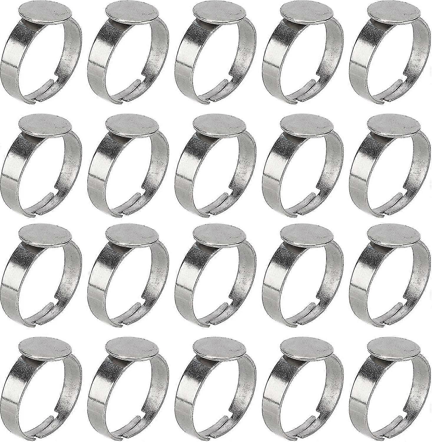 20 Pieces, Cabochon Ring, 10mm Adjustable Ring Bare Stainless Steel Pad Ring Base Flat Blank Ring