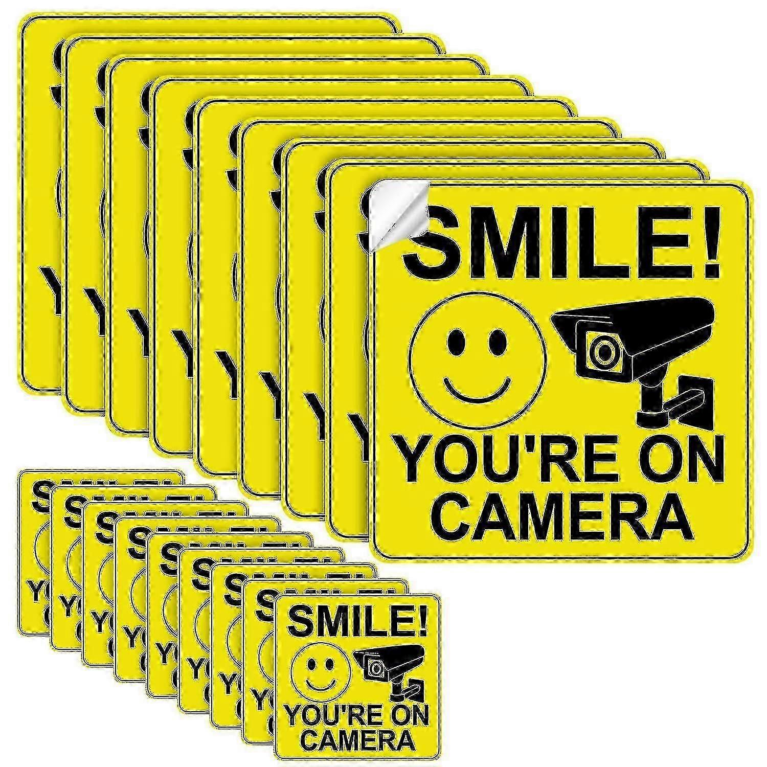 20 Pieces Smile You're On Camera Sticker Self-adhesive 24 Hour Video Surveillance Sign Sticker Uv Protected And Waterproof For Cctv Security Camera, I