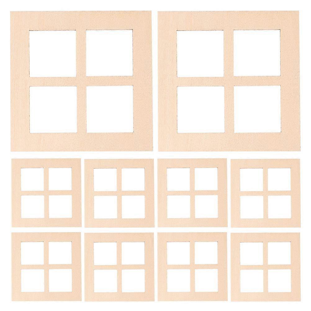 20pcs Miniature Wooden Window Frames 1:12 Scale Tiny House Windows Diy Dollhouse Furniture Accessories For Crafting Model Building Decor