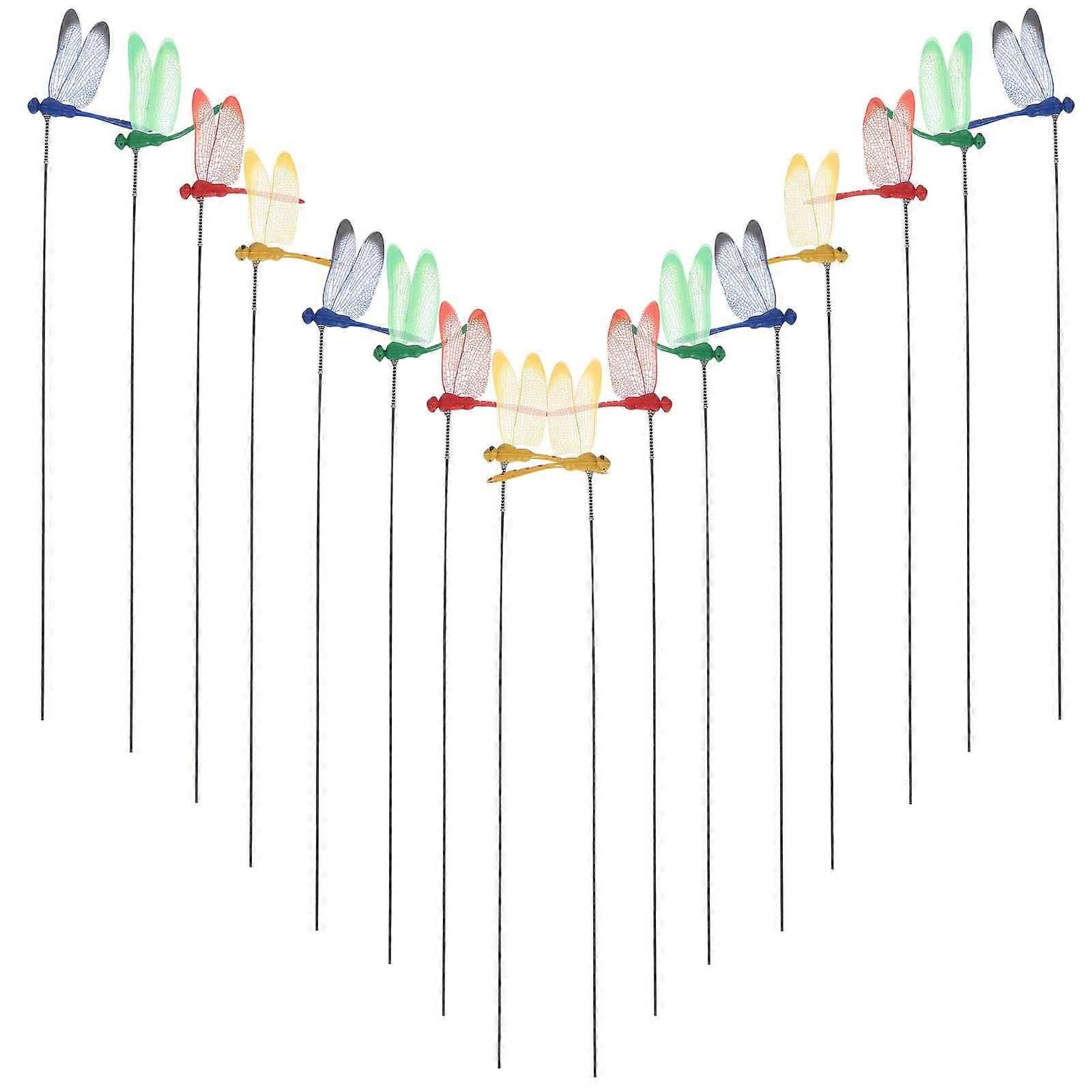 20PCS Realistic Dragonfly Garden Stakes with PVC & Iron Wire, Multi Colored , for Outdoor Lawn, Planter & Shop Decoration