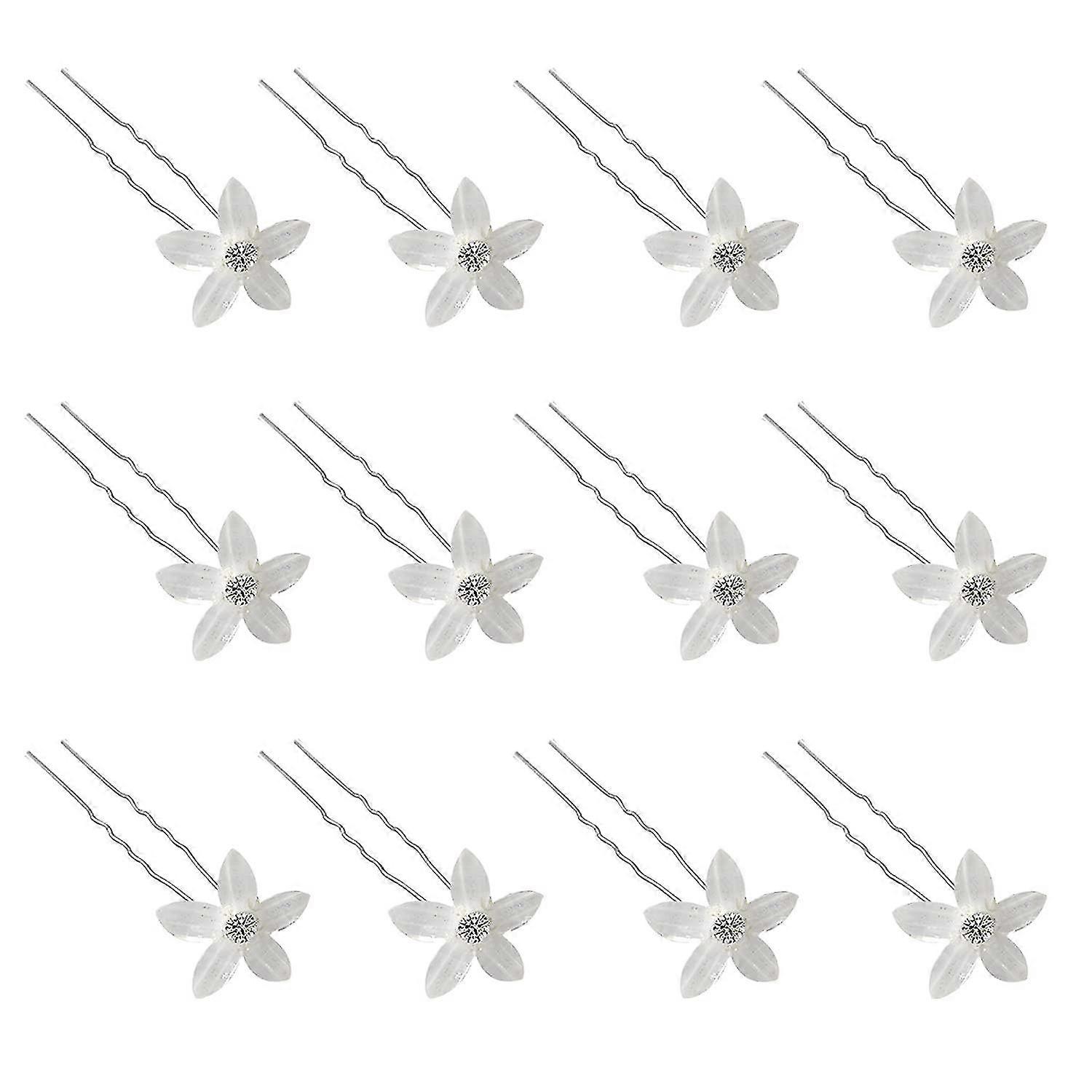 20 Pieces Wedding Flower Hair Pins, White Flower Rhinestone Hair Pins U-shaped Hairpins For Bridal