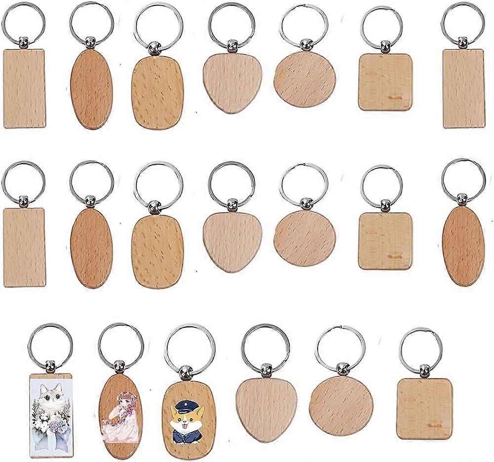 20Pcs Blank Wood Wooden Keychain Diy Custom Wood Key Chains Key Tags Anti Lost Wood Accessories Gifts (Mixed Design)