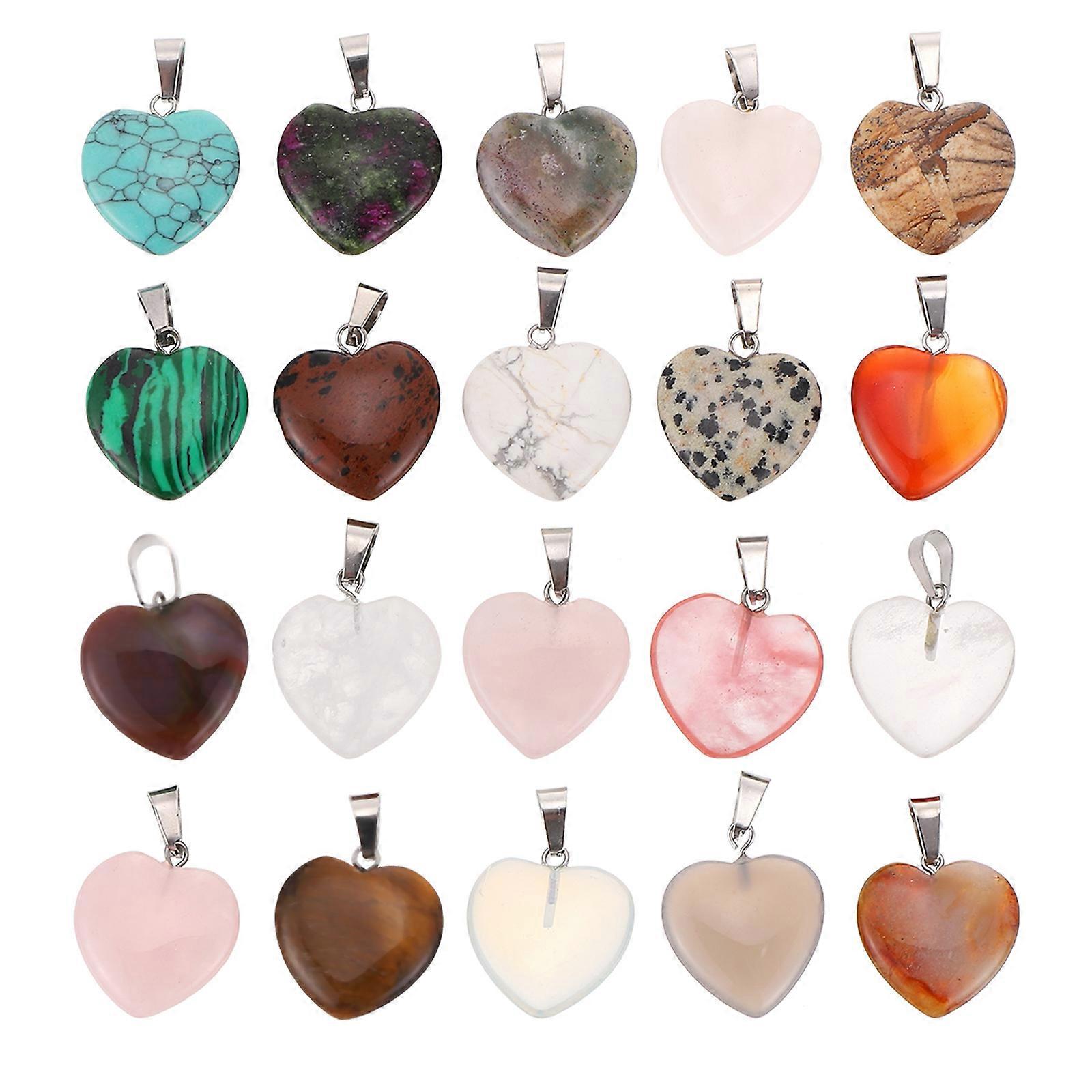 20 Pcs Heart Shaped Natural Stone Pendants for DIY Jewelry Making – Earring Charms, Decorative Bracelet Components, Elegant Craft Supplies for