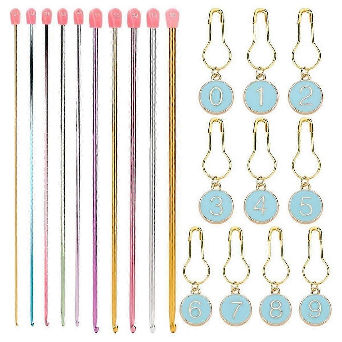 Abundant Content -- You can receive 10 pcs aluminum tunisian crochet hooks about 35.5-36.5cm long, size: 2.5-8mm, and 10 pcs alloy enamel locking marker, about 3.6cm, 10 style, 1pc/style. Abundant knitting tools and different sizes of crochet hooks can meet your daily hand knitting needExtra Long Crochet Hooks Set -- The length of each Aluminum crochet hook is about 3.5-3.6cm/14-14.4 inch. Every long crochet needle for crocheting give lots of room to crochet different kinds of yarn and create different handcrafts, with crochet hooks which is very easy to use for novice who want to learn Tunisian crochet and Well Crafted -- The Tunisian afghan crochet hooks in multiple colors are made of aluminum, and sturdy for long time application; number locking marker are mainly made of alloy enamel, flexible and easy to use, also comfortable to holdEasy Identification -- Each Afghan crochet hook is clearly marked with the size on , so it is easy to quickly identify you need. Each metal crochet hook of different size has a different bright color, and you also quickly identify the sizes of the crochet hooks tunisian set by the colorsWide Application -- Tunisian crochet hooks and alloy marker are useful tools for knitting and weaving, with which you can make scarves, hats, socks, sweaters, gloves, socks, shoes, blankets, carpets and other crafts, use them as heartwarming gifts for your parents, grandparents, friends and othersThe actual product may have slight color difference or difference, which will not affect the useColour:As ShownMaterial:MetalPackage Contents:10x Crochet Hooks10x number markerOnly the above package content, other products are not included.Note: Light reflection and different displays may cause the color of the item in the picture a little different from the real thing. The measurement allowed error is +/- 1-3cm.