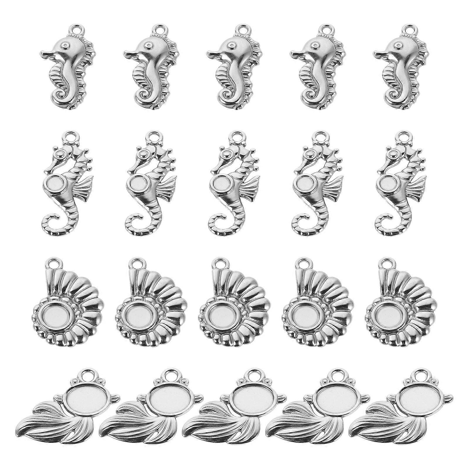 20pcs Ocean Series Charm Pendants Conch Fish Seahorse Charm for Creative DIY Bracelet Earrings Necklace Jewelry Making Accessories