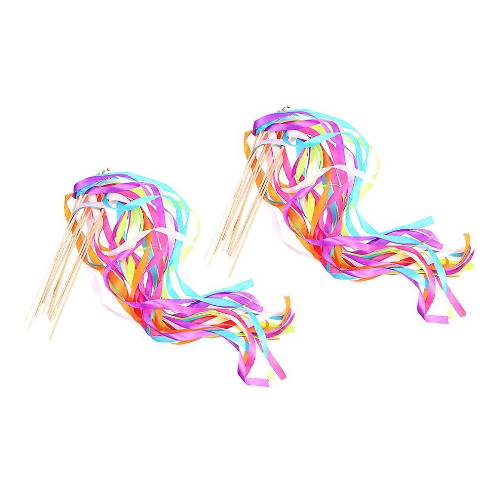 20pcs Wedding Ribbon Fairy Wands with Handles Party Decor Streamer Sticks for Bridal Showers, Lawn Celebrations, and Event Decorations Assorted