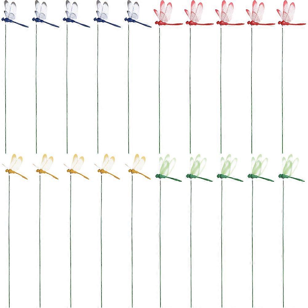20pcs Simulation Dragonfly Decors Flower Arrangement Dragonfly Stakes Garden Ornaments